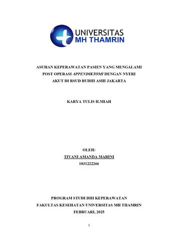 Tivani, Amanda Marini Vani (2025) Asuhan Keperawatan Pasien yang Mengalami Post Operasi Appendiktomi dengan Nyeri Akut di RSUD Budhi Asih Jakarta. Diploma thesis, Universitas Mohammad Husni Thamrin.