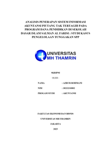 Azrur, Rohmani (2025) Analisis Penerapan Sistem Informasi Akuntansi Piutang Tak Tertagih pada Program Dana Pendidikan Dasar Islam Salman Al Farisi: Studi Kasus Pengelolaan Tunggakan SPP. Other thesis, Universitas Mohammad Husni Thamrin.