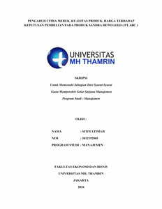 Siti, Fatimah (2024) Pengaruh Citra Merek, Kualitas Produk, Harga, Terhadap Keputusan Pembelian Pada produk Sandra Dewi Gold ( PT.ABC ). Other thesis, Universitas Mohammad Husni Thamrin.