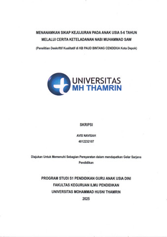 Avis, Navisah (2025) Menanamkan Sikap Kejujuran pada Anak Usia 5 - 6 Tahun Melalui Cerita Keteladanan Nabi Muhammad SAW. Other thesis, Universitas Mohammad Husni Thamrin.