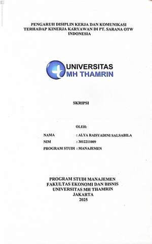 Alya, Raisyadini Salsabila (2025) Pengaruh Disiplin Kerja dan Komunikasi terhadap Kinerja Karyawan di PT. Sarana OTW Indonesia. Other thesis, Universitas Mohammad Husni Thamrin.