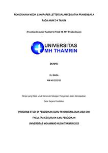 Eli, Saida (2025) PENGGUNAAN MEDIA SANDPAPER LETTER DALAM KEGIATAN PRAMEMBACA PADA ANAK 3-4 TAHUN (PENELITIAN DESKRIPTIF KUALITATIF DI PAUD KB ASY-SYAIDA DEPOK). Other thesis, Universitas Mohammad Husni Thamrin.