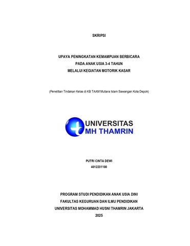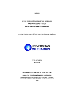 Putri, Cinta Dewi (2025) Upaya Peningkatan Kemampuan Berbicara pada Anak Usia 3 - 4 Tahun Melalui Kegiatan Motorik Kasar. Other thesis, Universitas Mohammad Husni Thamrin.