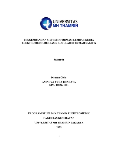 Anindya, Yuda Bharata (2025) Pengembangan Sistem Informasi Lembar Kerja Elektromedik Berbasis Kodular di Rumah Sakit X. Diploma thesis, Universitas Mohammad Husni Thamrin.