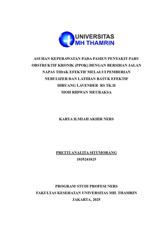 Pretti, Analita Situmorang (2025) Asuhan Keperawatan pada Pasien Penyakit Paru Obstruktif Kronik (PPOK) dengan Bersihan Jalan Napas Tidak Efektif Melalui Pemberian Nebulizer dan Latihan Batuk Efektif di Ruang Lavender RS TK.II Moh Ridwan Meuraksa. Other thesis, Universitas Mohammad Husni Thamrin.
