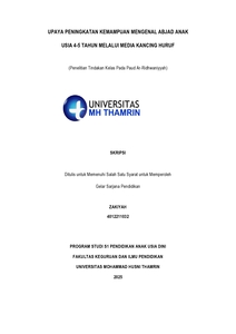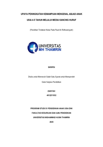 Zakiyah, Zakiyah (2025) Upaya Peningkatan Kemampuan Mengenal Abjad Anak Usia 4 - 5 Tahun Melalui Media Kancing Huruf. Other thesis, Universitas Mohammad Husni Thamrin.