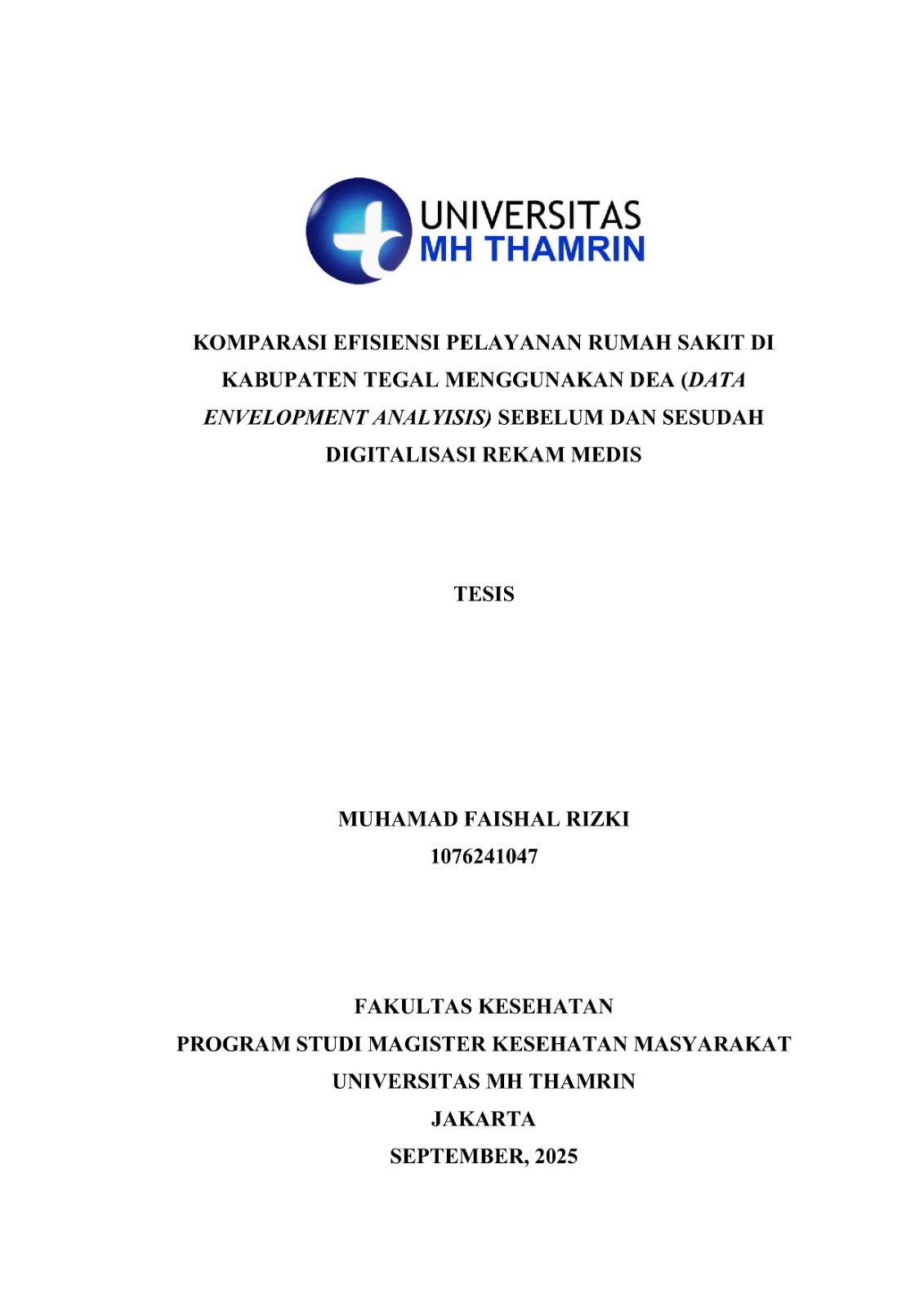 Muhamad Faishal, Rizki (2025) Komparasi Efisiensi Pelayanan Rumah Sakit Di Kabupaten Tegal Menggunakan Data Envelopment Analysis (DEA) Sebelum Dan Sesudah Digitalisasi Rekam Medis. Masters thesis, Universitas Mohamad Husni Thamrin.