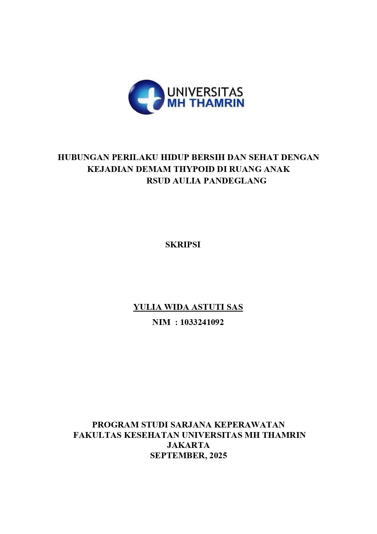 Yulia, Widaastuti SAS (2025) Hubungan Perilaku Hidup Bersih dan Sehat dengan Kejadian Demam Thypoid di Ruang Anak RSUD Aulia Pandeglang. Other thesis, Universitas Mohammad Husni Thamrin.
