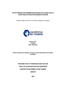 Iti, Rasiti (2025) Upaya Peningkatan Kemampuan Motorik Halus Anak Usia 4 - 5 Tahun Melalui Kegiatan Bermain Plastisin. Other thesis, Universitas Mohammad Husni Thamrin.