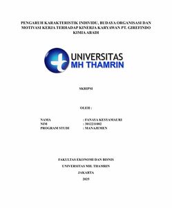 Fanaya, Kesyamauri (2025) Pengaruh Karakteristik Individu, Budaya Organisasi dan Motivasi Kerja terhadap Kinerja Karyawan PT. Girefindo Kimia Abadi. Other thesis, Universitas Mohammad Husni Thamrin.