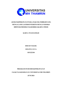 Izzatul, Ulya (2024) ASUHAN KEPERAWATAN PADA ANAK TODDLER YANG MENGALAMI GASTROENTERITIS DENGAN RISIKO HIPOVOLEMIA DI RS. PASAR REBO JAKARTA TIMUR. Diploma thesis, Universitas Mohammad Husni Thamrin.