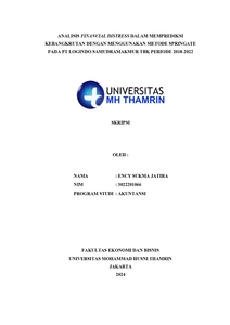 Ency, Sukma Jatira (2024) Analisis Financial Distress dalam Memprediksi Kebangkrutan dengan Menggunakan Metode Springate pada PT Logindo Samudra Makmur TBK Periode 2018 - 2022. Other thesis, Universitas Mohammad Husni Thamrin.