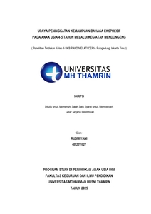 Rusmiyani, Rusmiyani (2025) Upaya Peningkatan Kemampuan Bahasa Ekspresif pada Anak Usia 4-5 Tahun Melalui Kegiatan Mendongeng. Other thesis, Universitas Mohammad Husni Thamrin.