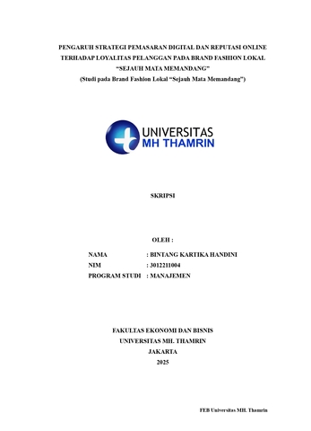 Bintang, Kartika Handini (2025) Pengaruh Strategi Pemasaran Digital dan Reputasi Online terhadap Loyalitas Pelanggan pada Brand Fashion Lokal "Sejauh Mata Memandang" (Studi pada Brand Fashion Lokal "Sejauh Mata Memandang"). Other thesis, Universitas Mohammad Husni Thamrin.