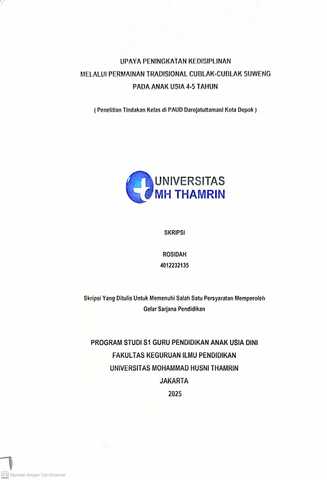 Rosidah, Rosidah (2025) Upaya Peningkatan Kedisiplinan Melalui Permainan Tradisional Cublak Cublak Suweng pada Anak Usia 4 - 5 Tahun. Other thesis, Universitas Mohammad Husni Thamrin.