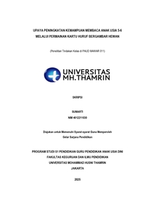 Sumarti, Sumarti (2025) Upaya Peningkatan Kemampuan Membaca Anak Usia 5 - 6 Melalui Permainan Kartu Huruf Bergambar Hewan. Other thesis, Universitas Mohammad Husni Thamrin.