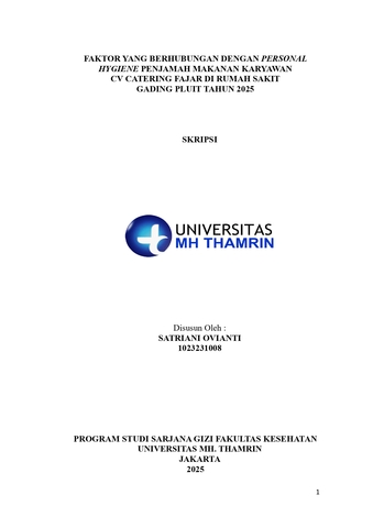 Satriani, Ovianti (2025) Faktor yang Berhubungan dengan Personal Hygiene Penjamah Makanan Karyawan CV Catering Fajar di Rumah Sakit Gading Pluit Tahun 2025. Other thesis, Universitas Mohammad Husni Thamrin.