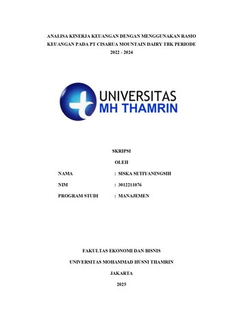Siska, Setiyaningsih (2025) Analisis Kinerja Keuangan dengan Menggunakan Rasio Keuangan pada PT Cisarua Mountain Dairy Tbk Periode 2022 - 2024. Other thesis, Universitas Mohammad Husni Thamrin.
