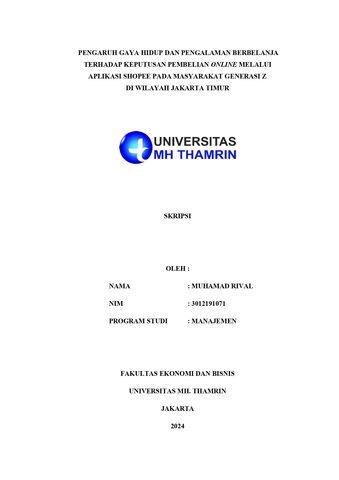 Muhamad, Rival (2024) PENGARUH GAYA HIDUP DAN PENGALAMAN BERBELANJA TERHADAP KEPUTUSAN PEMBELIAN ONLINE MELALUI APLIKASI SHOPEE PADA MASYARAKAT GENERASI Z DI WILAYAH JAKARTA TIMUR. Other thesis, Universitas Mohammad Husni Thamrin.