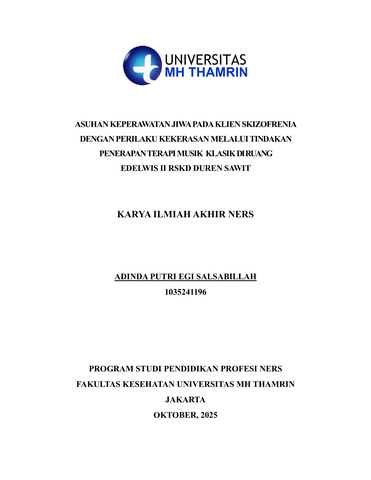 Adinda, Putri Egi Salsabillah (2025) Asuhan Keperawatan Jiwa pada Klien Skizofrenia dengan Perilaku Kekerasan Melalui Tindakan Penarapan Terapi Musik Klasik di Ruang Edelwis II RSKD Duren Sawit. Other thesis, Universitas Mohammad Husni Thamrin.