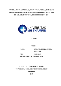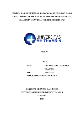 Respati, Adhityaputra Pratama (2025) Analisis Rasio Likuiditas, Rasio Solvabilitas, dan Rasio Profitabilitas untuk Menilai Kinerja Keuangan pada PT. AirAsia Indonesia, Tbk Periode 2020 - 2024. Other thesis, Universitas Mohammad Husni Thamrin.