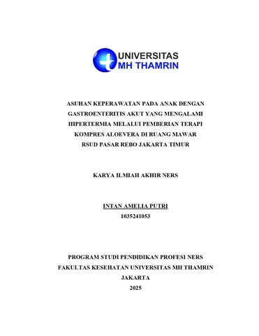 Intan, Amelia Putri (2025) Asuhan Keperawatan pada Anak dengan Gastroenteritis Akut yang Mengalami Hipertermia Melalui Pemberian Terapi Kompres Aloevera di Ruang Mawar RSUD Pasar Rebo Jakarta Timur. Other thesis, Universitas Mohammad Husni Thamrin.