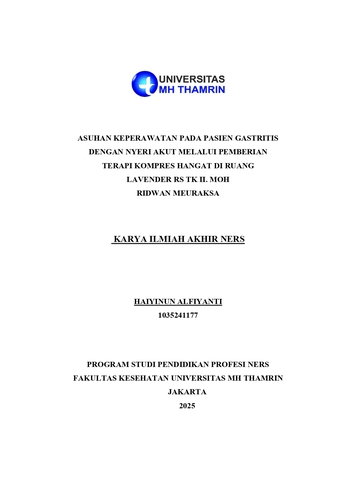 Haiyinun, Alfiyanti (2025) Asuhan Keperawatan pada Pasien Gastritis dengan Nyeri Akut Melalui Pemberian Terapi Kompres Hangat di Ruang Lavender RS TK II. Moh Ridwan Meuraksa. Other thesis, Universitas Mohammad Husni Thamrin.