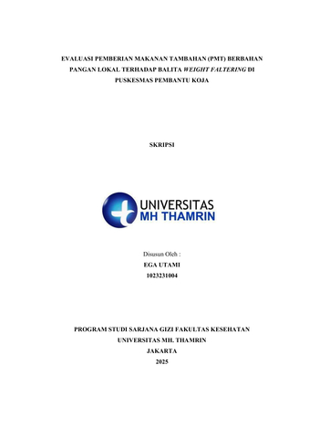 Ega, Utami (2025) Evaluasi Pemberian Makanan Tambahan (PMT) Berbahan Pangan Lokal terhadap Balita Weight Flatering di Puskesmas Pembanu Koja. Other thesis, Universitas Mohammad Husni Thamrin.