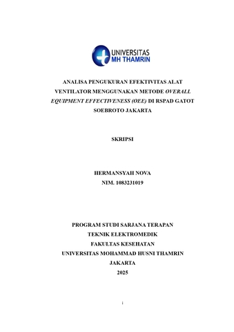 Hermansyah, Nova (2025) Analisis Pengukuran Efektivitas Alat Ventilator Menggunakan Metode Overall Equipment Effectiveness (OEE) di RSPAD Gatot Soebroto Jakarta. Other thesis, Universitas Mohammad Husni Thamrin.