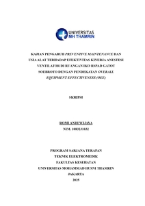 Romi Andi, Wijaya (2025) Kajian Pengaruh Preventive Maintenance dan Usia Alat terhadap Efektivitas Kinerja Anestesi Ventilator di Ruangan IKO RSPAD Gatot Soebroto Dengan Pendekatan Overall Equipment Effectiveness (OEE). Other thesis, Universitas Mohammad Husni Thamrin.