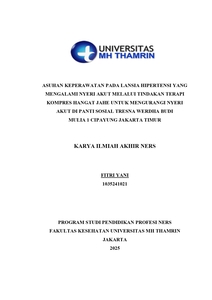 Fitri, Yani (2025) Asuhan Keperawatan pada Lansia Hipertensi yang Mengalami Nyeri Akut Melalui Tindakan Terapi Kompres Hangat Jahe untuk Mengurangi Nyeri Akut di Panti Sosial Tresna Werdha Budi Mulia 1 Cipayung Jakarta Timur. Other thesis, Universitas Mohammad Husni Thamrin.