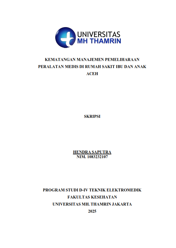 Hendra, Saputra (2025) Kematangan Manajemen Pemeliharaan Peralatan Medis di Rumah Sakit Ibu dan Anak Aceh. Other thesis, Universitas Mohammad Husni Thamrin.