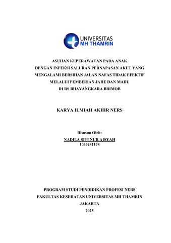 Nadila, Siti Nur Aisyah (2025) Asuhan Keperawatan pada Anak dengan Infeksi Saluran Pernapasan Akut yang Mengalami Bersihan Jalan Nafas tidak Efektif Melalui Pemberian Jahe dan Madu di RS Bhayangkara Brimob. Other thesis, Universitas Mohammad Husni Thamrin.