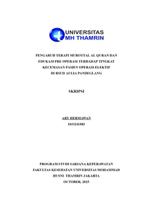 Ary, Hermawan (2025) Pengaruh Terapi Murottal Al Quran dan Edukasi Pre Operasi terhadap Tingkat Kecemasan Pasien Operasi Elektif di RSUD Aulia Pandeglang. Other thesis, Universitas Mohammad Husni Thamrin.