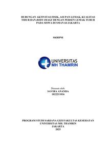 Savira, Ananda (2025) Hubungan Aktivitas Fisik, Asupan Lemak, Kualitas Tidur dan Body Image dengan Persen Lemak Tubuh pada Siswa di SMAN 64 Jakarta. Other thesis, Universitas Mohammad Husni Thamrin.