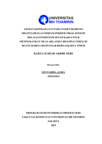 Siti, Farida Audia (2025) Asuhan Keperawatan pada Pasien Diabetes Melitus dengan Perfusi Perifer tidak Efektif Melalui Intervensi Senam Kaki untuk Meningkatkan Nilai ABI (Ankle Brachial Index) di Ruang Dahllia RSUD Pasar Rebo Jakarta Timur. Other thesis, Universitas Mohammad Husni Thamrin.