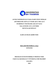 Reza, Henri Ferbian (2025) Asuhan Keperawatan pada Pasien Post Operasi Apendiktomi dengan Nyeri Akut Melalui Pemberian Teknik Relaksasi Nafas Dalam di Ruang Lavender RSUD Pasar Minggu. Other thesis, Universitas Mohammas Husni Thamrin.