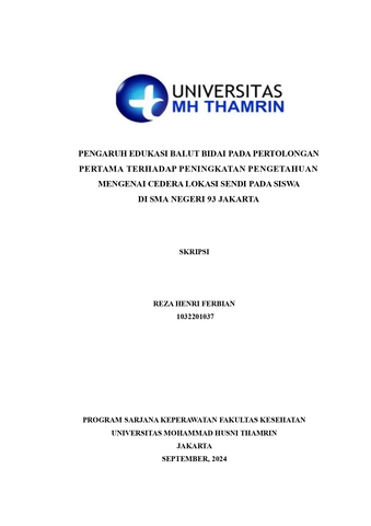 Reza, Henri Ferbian (2024) Pengaruh Edukasi Balut Bidai pada Pertolongan Pertama terhadap Peningkatan Pengetahuan Mengenai Cedera Lokasi Sendi pada Siswa di SMA Negeri 93 Jakarta. Other thesis, Universitas Mohammas Husni Thamrin.
