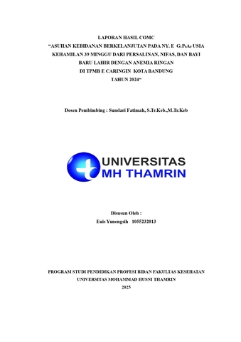 Euis, Yunengsih (2025) Asuhan Kebidanan Berkelanjutan pada Ny. E G1P0A0 Usia Kehamilan 39 Minggu dari Persalinan, Nifas, dan Bayi Baru Lahir dengan Anemia Ringan di TPMB E Caringin Kota Bandung Tahun 2024. Other thesis, Universitas Mohammad Husni Thamrin.