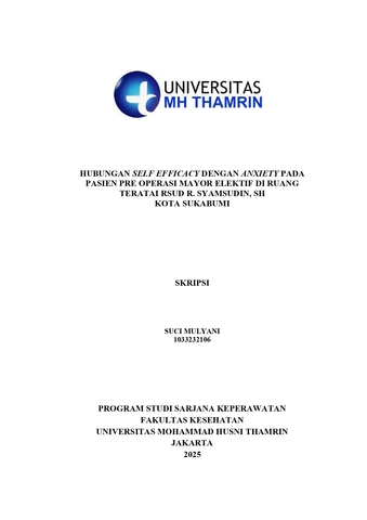 Suci, Mulyani (2025) Hubungan Self Efficacy dengan Anxiety pada Pasien Pre Operasi Mayor Elektif di Ruang Teratai RSUD R. Syamsudin, SH Kota Sukabumi. Other thesis, Universitas Mohammad Husni Thamrin.
