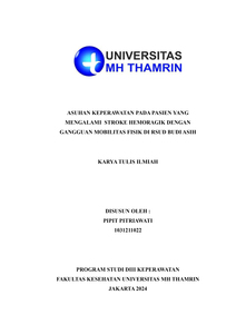 Pipit, Pitriawati (2024) Asuhan Keperawatan Pada Pasien Yang Mengalami Stroke Hemoragik Dengan Gangguan Mobilitas Fisik Di RSUD Budi Asih. Diploma thesis, Universitas Mohammad Husni Thamrin.