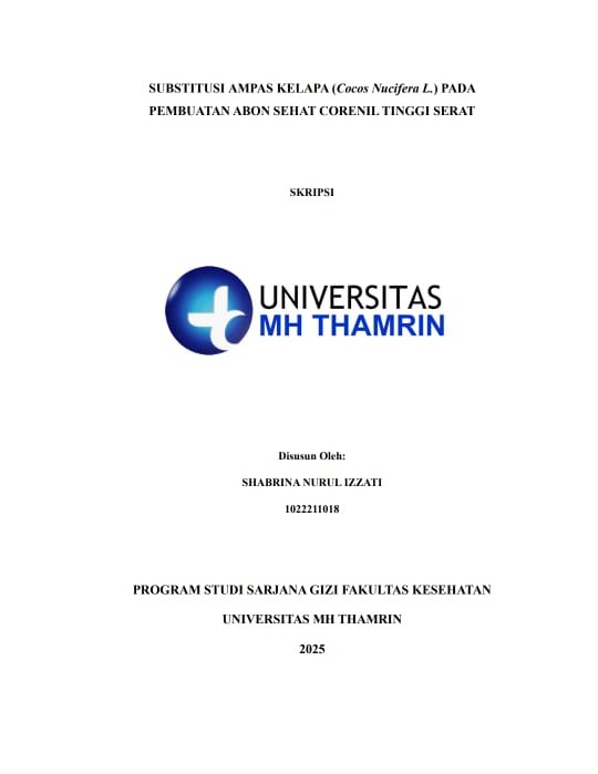 Shabrina, Nurul Izzati (2025) Substitusi Ampas Kelapa (Cocos Nucifera L.) pada Pembuatan Abon Sehat Corenil Tinggi Serat. Other thesis, Universitas Mohammad Husni Thamrin.