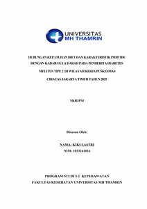 Kiki, Lastri (2025) Hubungan Kepatuhan Diet dan Karakteristik Individu dengan Kadar Gula Darah pada Penderita Diabetes Melitus Tipe 2 di Wilayah Kerja Puskesmas Ciracas Jakarta Timur Tahun 2025. Other thesis, Universitas Mohammad Husni Thamrin.