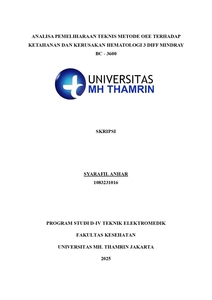 Syarafil, Anhar (2025) Analisa Pemeliharaan Teknis Metode OEE terhadap Ketahanan dan Kerusakan Hematologi 3 DIFF Mindray BC - 3600. Diploma thesis, Universitas Mohammad Husni Thamrin.