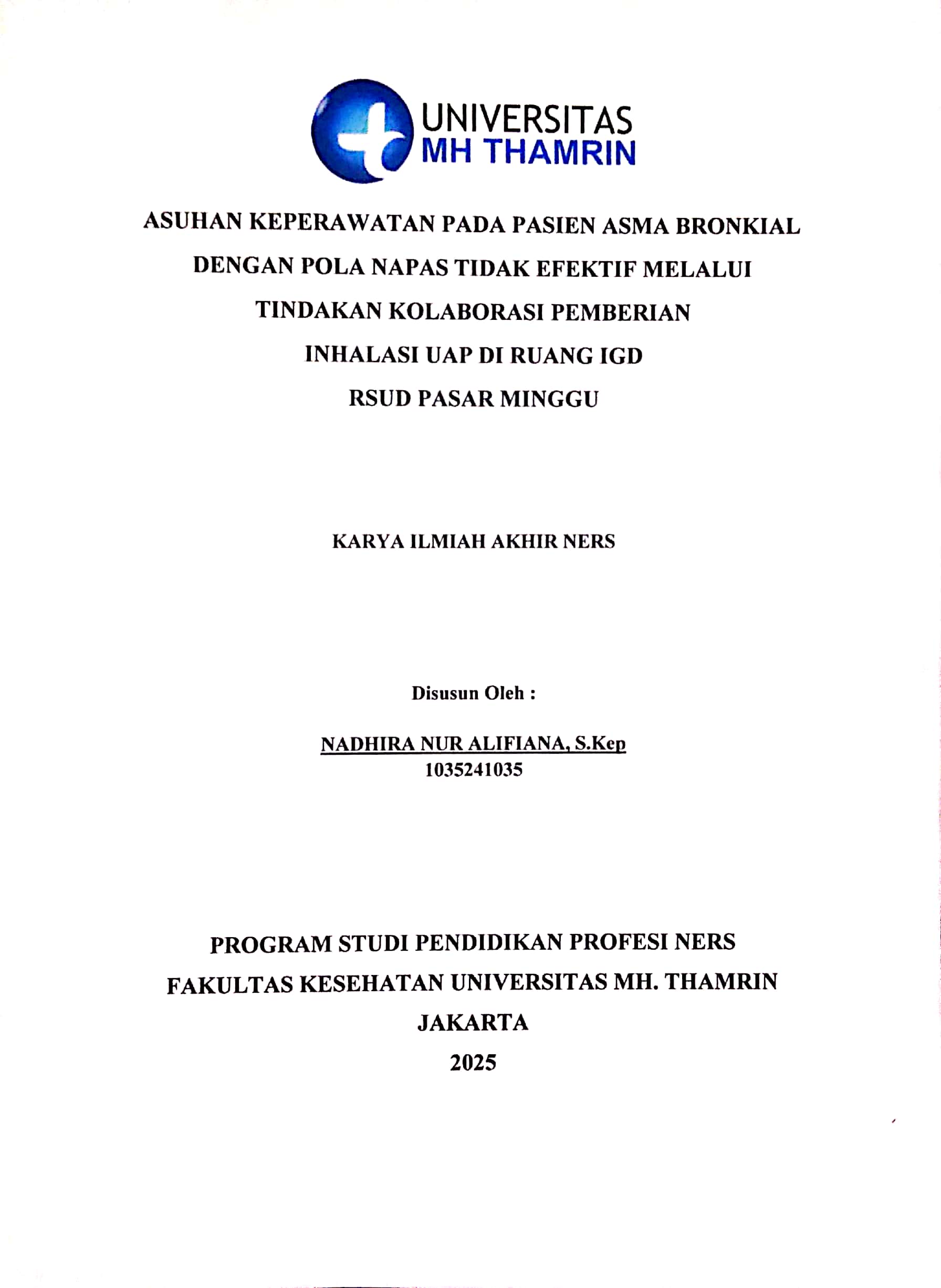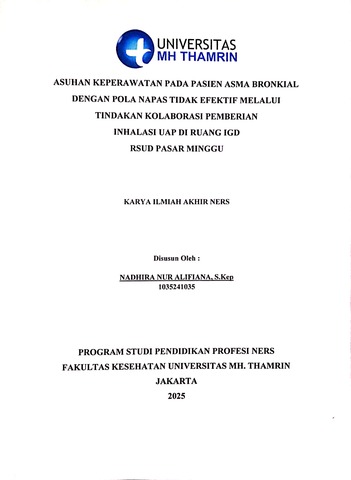 Nadhira Nur, Alifiana (2025) Asuhan Keperawatan pada Pasien Asma Bronkial dengan Pola Napas tidak Efektif Melalui Tindakan Kolaborasi Pemberian Inhalasi UAP di Ruang IGD RSUD Pasar Minggu. Other thesis, Universitas Mohammad Husni Thamrin.