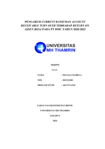 Seliana, Isabela (2024) PENGARUH CURRENT RATIO DAN ACCOUNT RECEIVABLE TURN OVER TERHADAP RETURN ON ASSET (ROA) PADA PT DMC TAHUN 2020-2022. Other thesis, Universitas Mohammad Husni Thamrin.