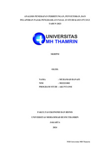 Muhamad, Hanafi (2024) ANALISIS PENERAPAN PERHITUNGAN, PENYETORAN, DAN PELAPORAN PAJAK PENGHASILAN PASAL 23 STUDI KASUS PT.XYZ TAHUN 2023. Other thesis, Universitas Mohammad Husni Thamrin.