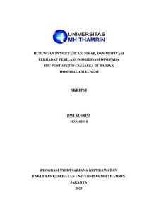 Dwi, Kusrini (2025) Hubungan Pengetahuan, Sikap, dan Motivasi terhadap Perilaku Mobilisasi Dini pada Ibu Post Sectio Caesarea di Radjak Hospital Cileungsi. Other thesis, Universitas Mohammas Husni Thamrin.