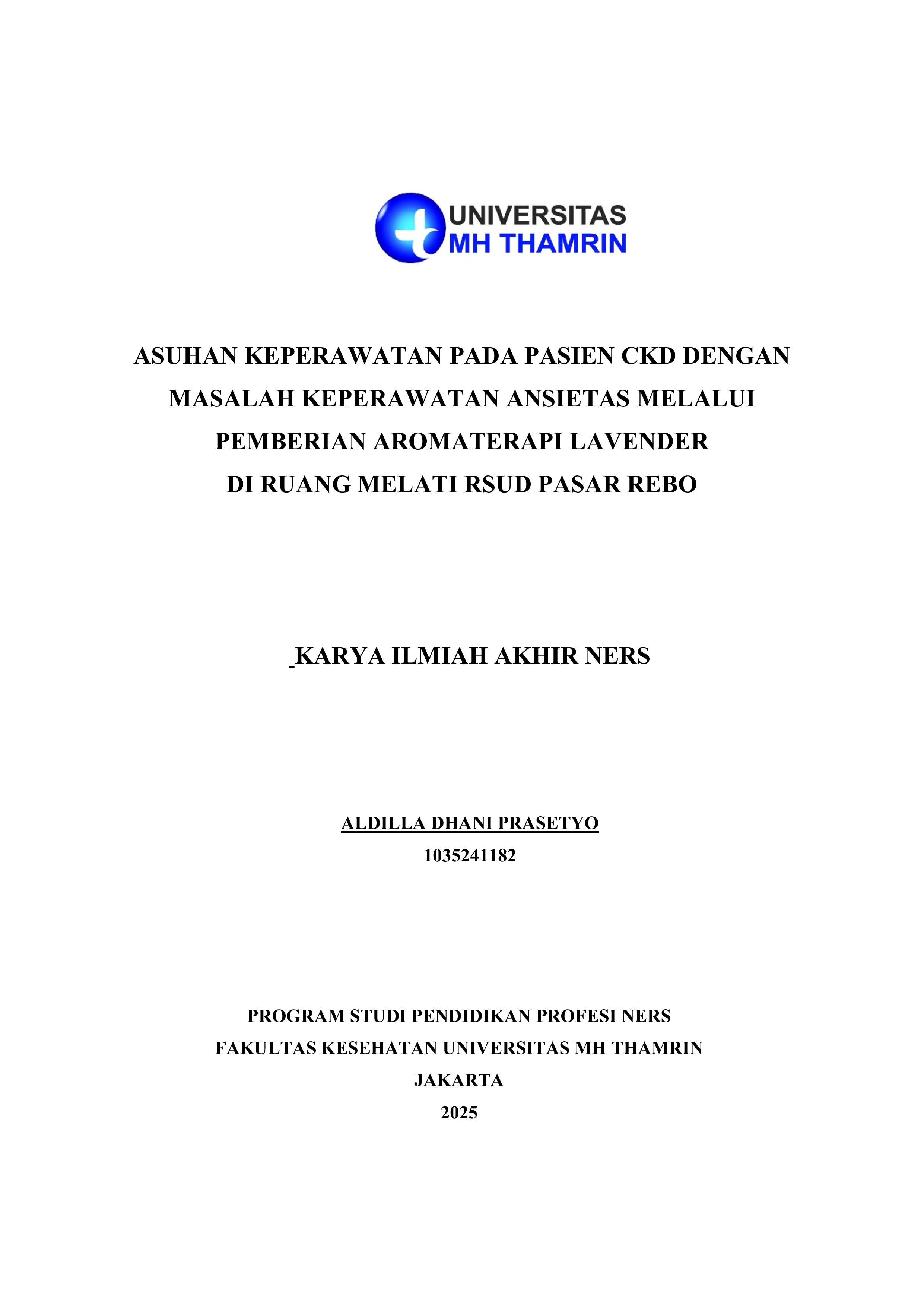 Aldilla, Dhani Prasetyo (2025) Asuhan Keperawatan pada Pasien CKD dengan Masalah Keperawatan Ansietas Melalui Pemberian Aromaterapi Lavender di Ruang Melati RSUD Pasar Rebo. Other thesis, Universitas Mohammad Husni Thamrin.