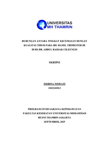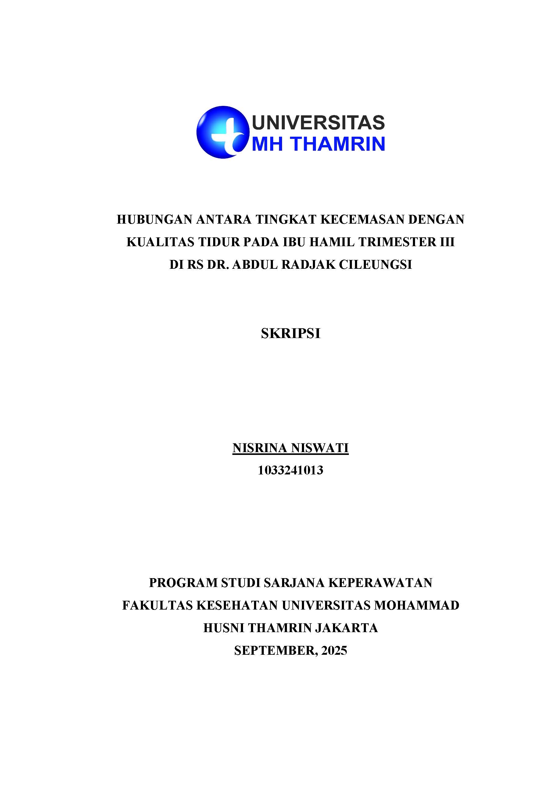 Nisrina, Niswati (2025) Hubungan Antara Tingkat Kecemasan dengan Kualitas Tidur pada Ibu Hamil Trimester III di RS dr. Abdul Radjak Cileungsi. Other thesis, Universitas Mohammad Husni Thamrin.